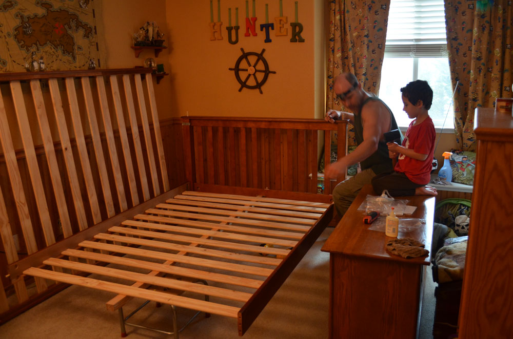 The boys each have their own room, but Ryder has always wanted to sleep in Hunter's room so they could watch TV and hang out together before bed. We had a great opportunity to pick up a bunk bed for them and we got it all set up today! The bunk beds are full size so we will need to get larger mattresses, but it looks really great in Hunter's room!
