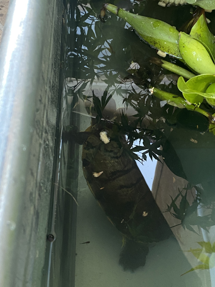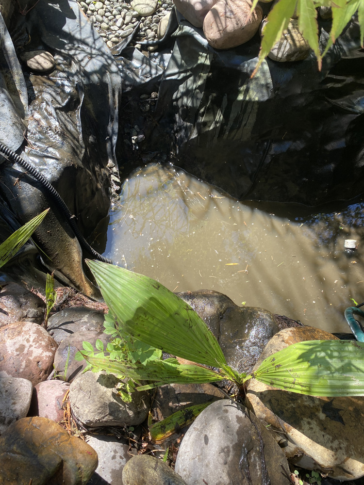 Draining the PondAugust 2023So after we got back from Lassen, the koi seemed to be less interested in food. It was hot while we were gone and we turned off the filter because the skimmer sometimes sucks air when it gets clogged. Long story short, We had a few large fish starting to look bad. The parrot plant was really overgrown and it had been a long time since we cleaned the bottom. We got a holding tank and took out the fish and turtle, and drained the pond. They stayed in the tank for one night before we were able to refill it after removing all the fallen rocks, and scooping out tons of sludge. The water is still a little cloudy and needs to settle, but it is all fresh water and everyone is happy to be home.