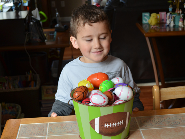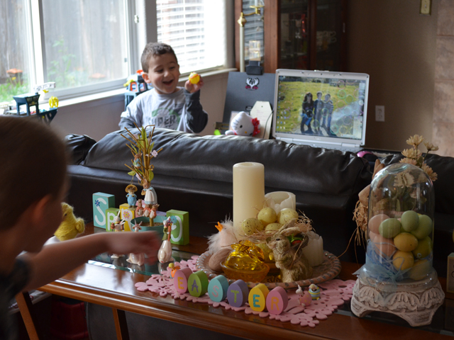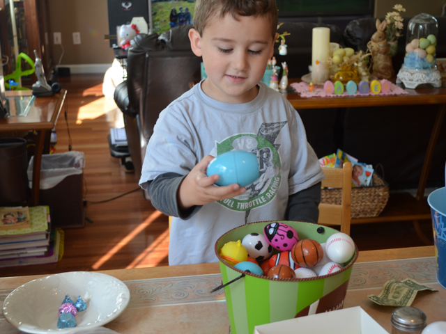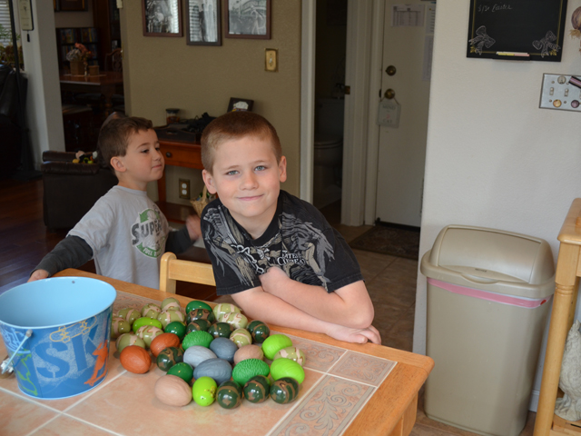 March 31, 2013It was drizzly and wet outside, so we hid 80 Easter eggs in the house! Click any image for larger view.
