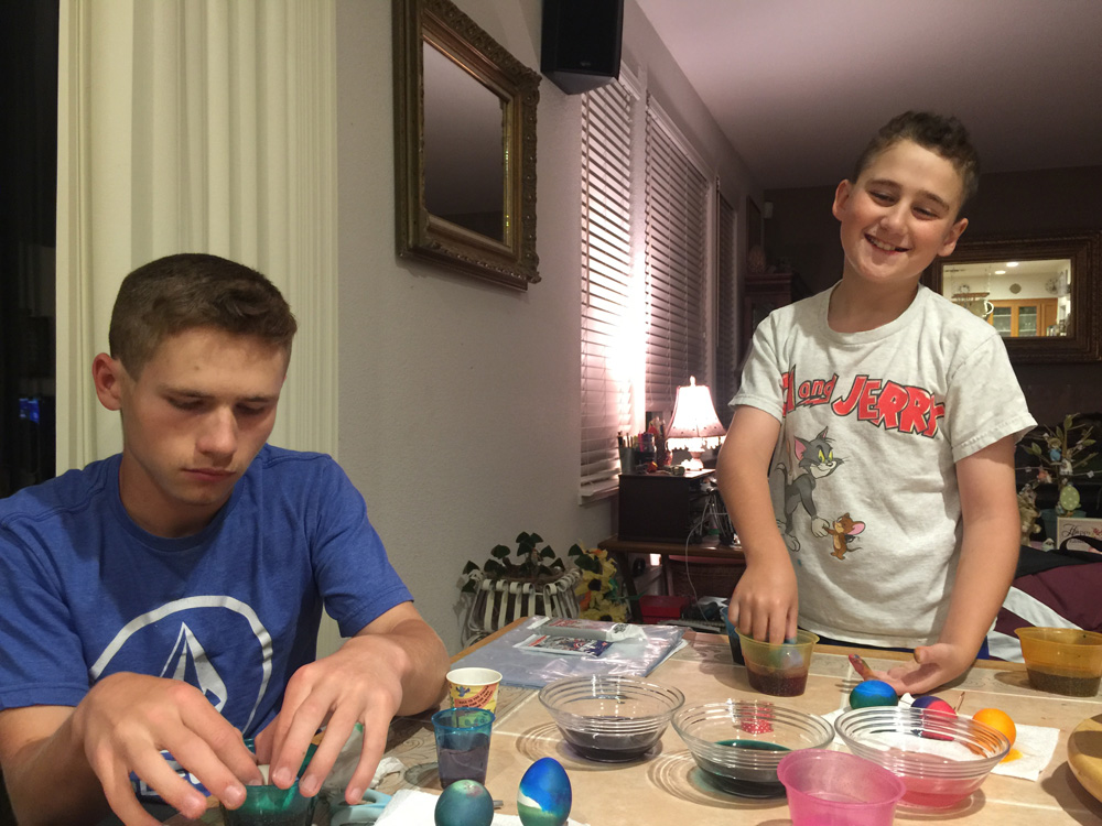 Since we were going to be gone on Easter, the boys colored eggs and did their Easter egg hunt very early on Easter Sunday -- around 1am! They had 100 eggs to find. They also got their Easter baskets a little early.