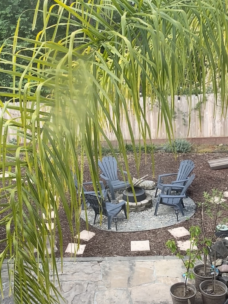 June 3, 2024We made this firepit from a washer drum last summer and the boys love having fires at night! We added some adirondack chairs and decided to create a better surface around the fire pit with gravel. We added some solar lights and we love it!