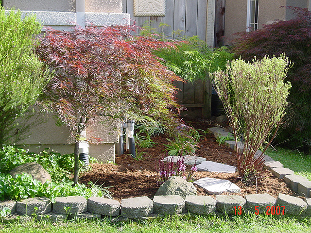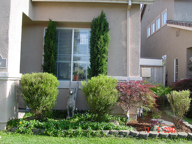 The front yard was getting a little overgrown. We took a day to cut back some plants, add a few new flowers, add some bark and hang our address sign.