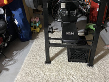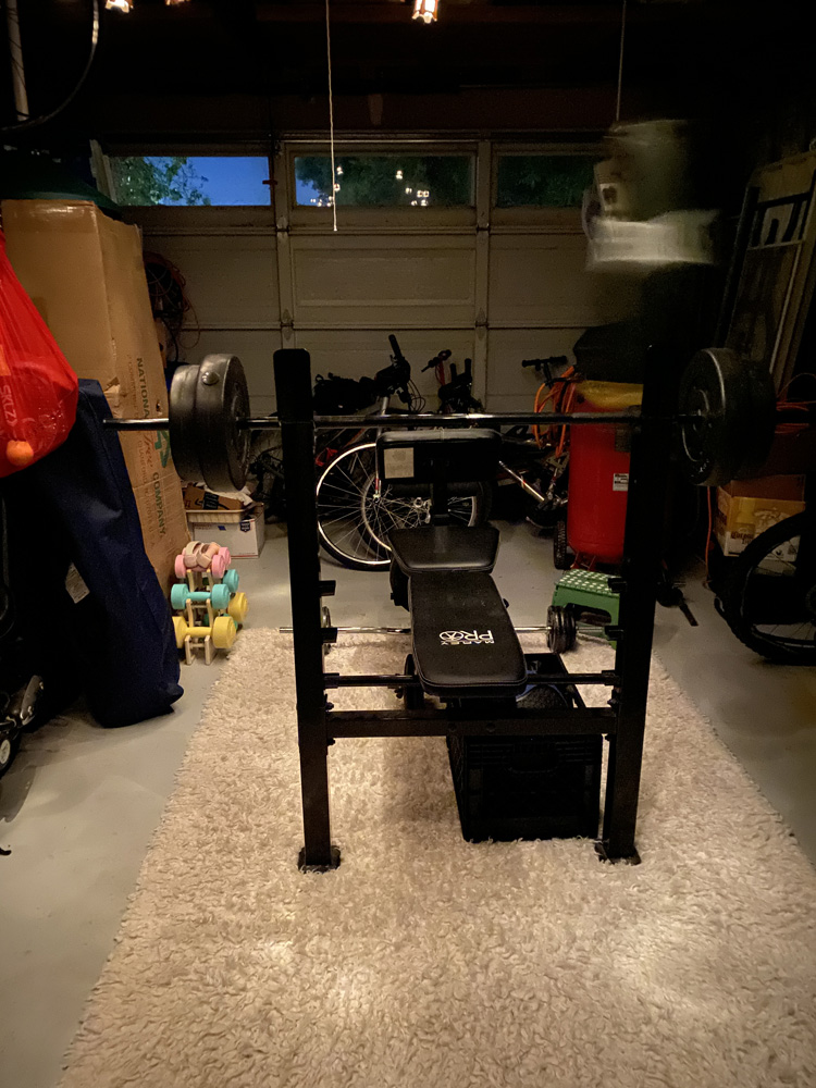I replaced the rug in the living room, so I put the old one in the garage so Hunter had a nice area for his workout bench. I also added some extra string lights we had. It is a great spot for the boys to workout now!