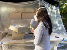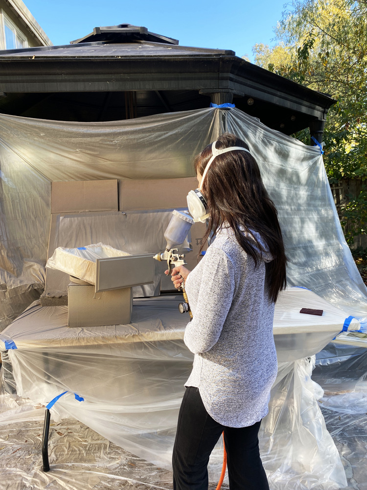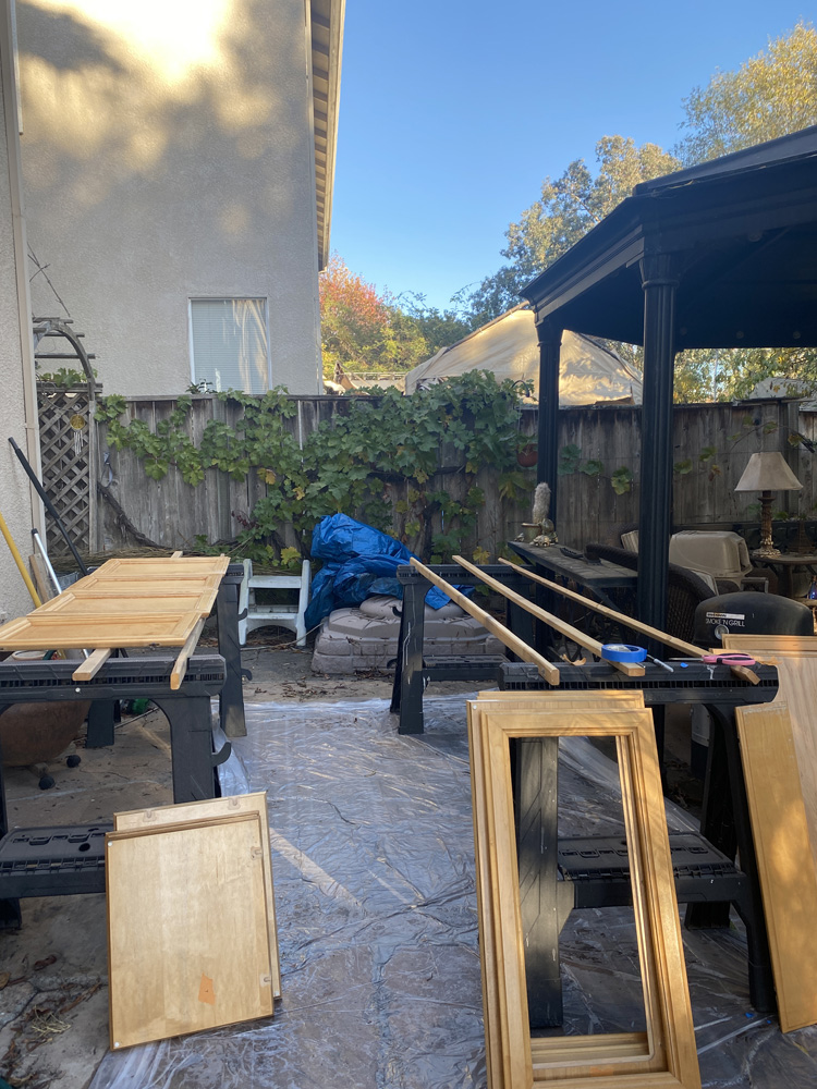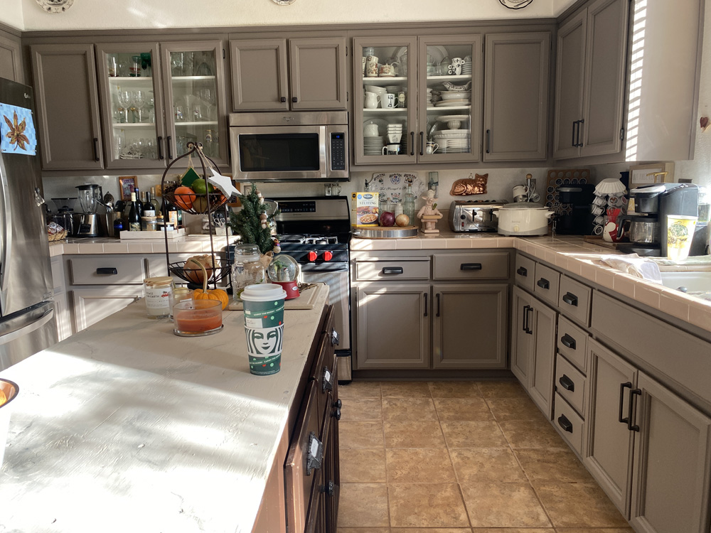 Finally after a very long time we have repainted our cabinets! They were very orange from the sun and incredibly water damaged. We used Behr Scuffguard chalk paint in Wild Truffle, and we absolutely love it!