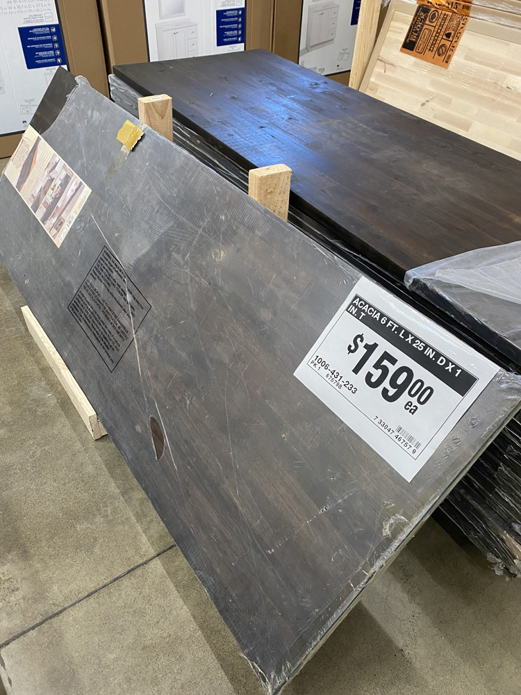 March 31, 2022A while back, we tore off the tile from our kitchen island. We didn't have anything to put on it yet, so I gave the plywood a faux marble finish...lol. We were pricing quartz and other options, and found this great acacia butcher block at Home Depot. we installed it, but it was the same width of the island so there was no overhang. My mom helped me add trim and finish it to match. We also used table-leaf hinges to add an acacia extension. Click any image for larger view. |