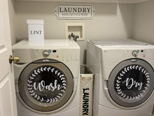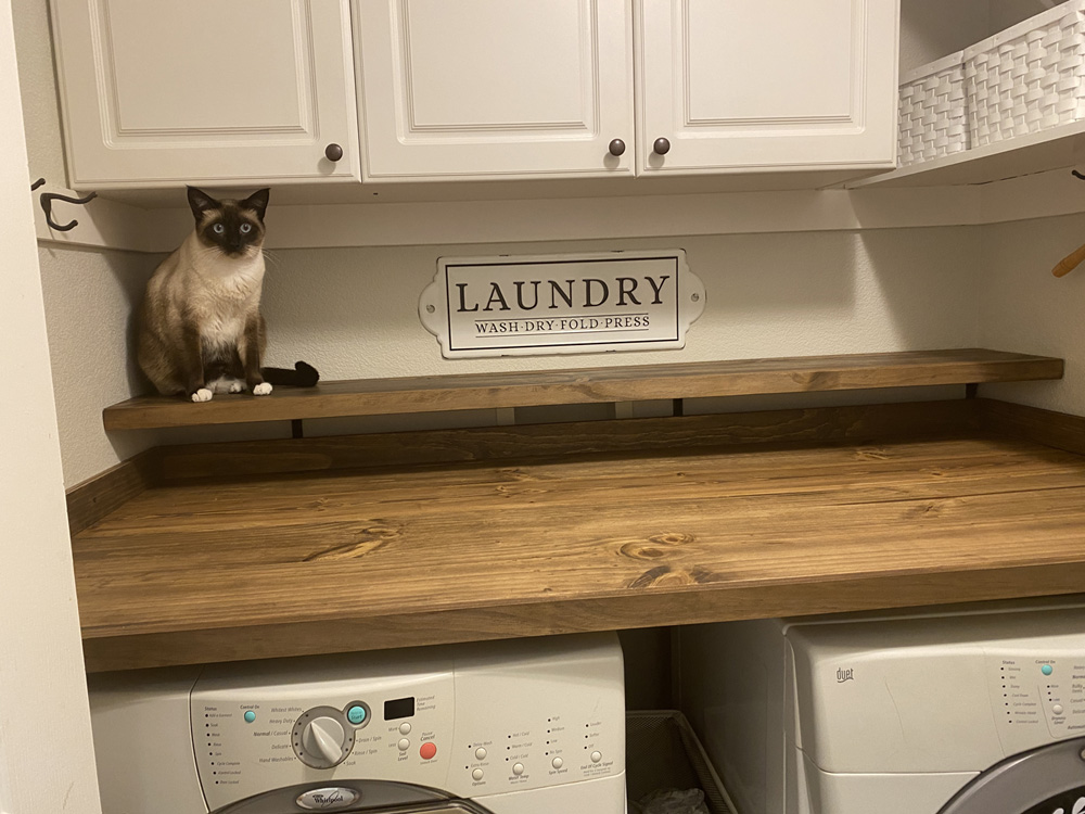 I've seen a lot of DIY videos on TikTok and decided to try making a laundry table. My mom helped and had the idea to make it in two pieces and use latches to clip it together. Now, it will be easily removable if we need to swap out the washer and dryer. We also added a shelf above and side boards. I could not be happier with it!