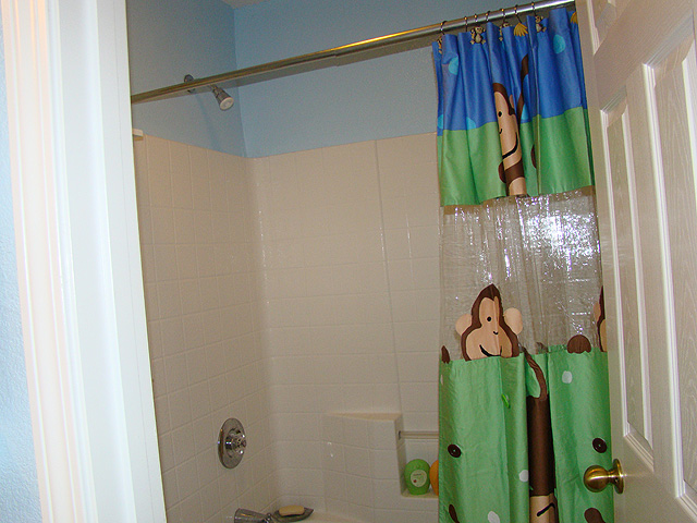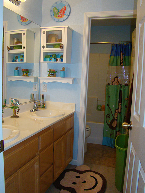 We just got finished changing the guest bathroom to the kid's bathroom. Today, Dave painted and it turned out great! Click any image for larger view.