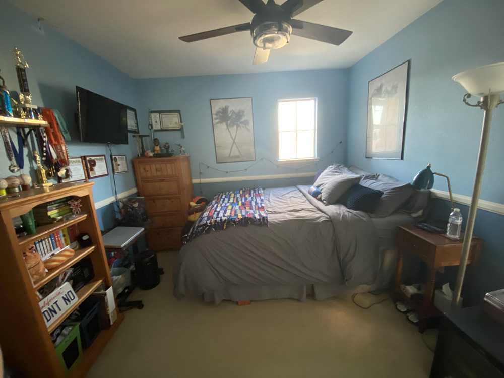 We have a kit to convert the double-door closet to barn doors, and still have to paint the furniture and a lot of other finishing touches like updating all of the outlets. Currently, we are working on finishing the floor in between track meets!