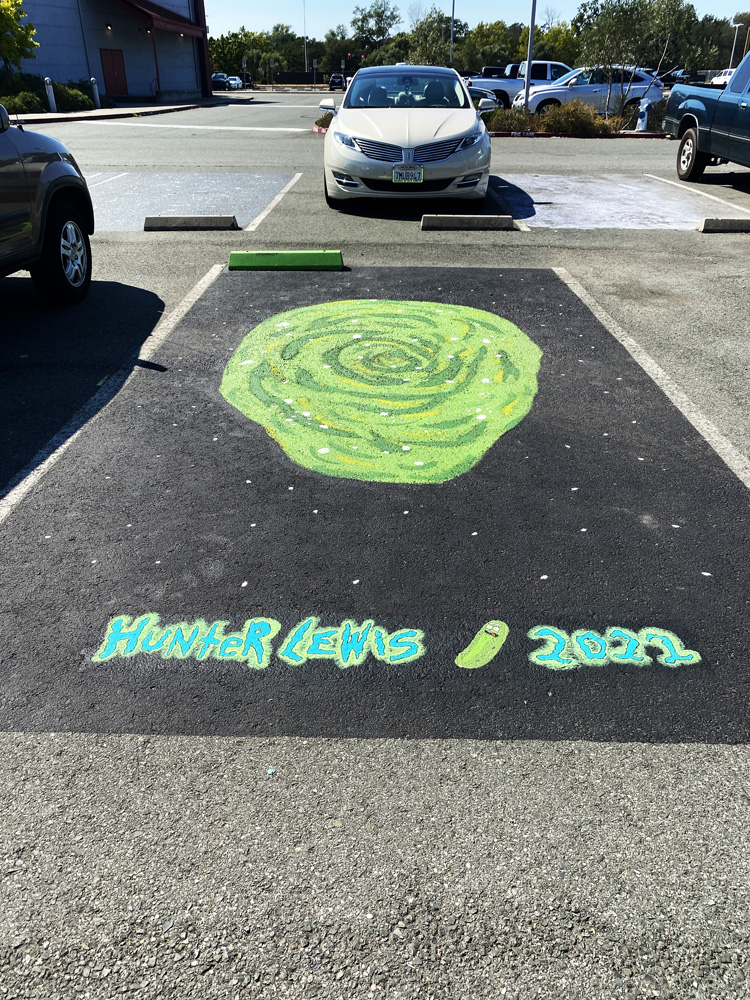 Hunter recently painted the Rick & Morty portal for his senior parking spot. He wantedx to add his name, but we wanted to do the Rick & Morty style font. We bought blank stencils and made enlargements of the letters on the printed. We then traced them on the stencils and used a hot craft tool to cut them out. We painted the letters in stages so they had the same effect. We also added Pickle Rick! It came out reallu cute.