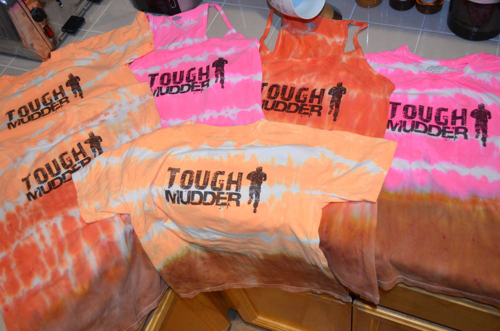 I always make shirts for the boys and I to wear to Dave's races. My best friend and I made shirts for Tough Mudder last year and we had a few mishaps. This year, we decided to be daring and not only do transfers, but tie-dye.
